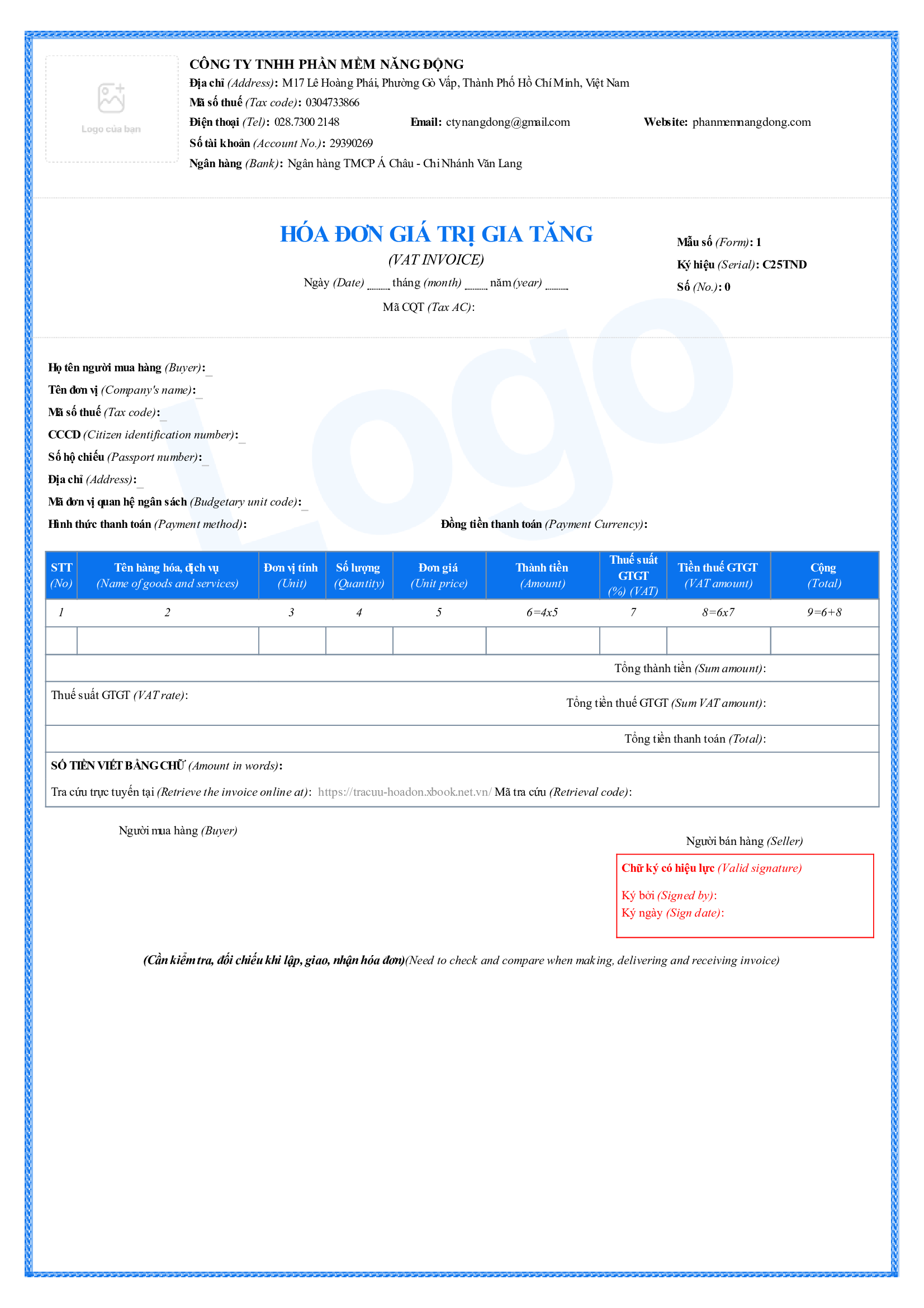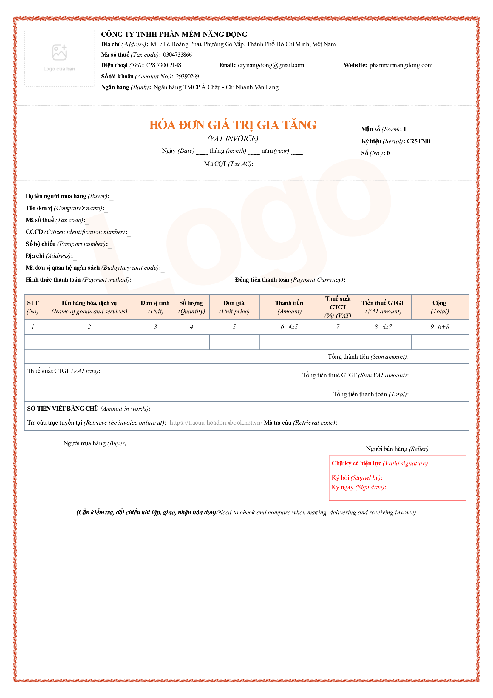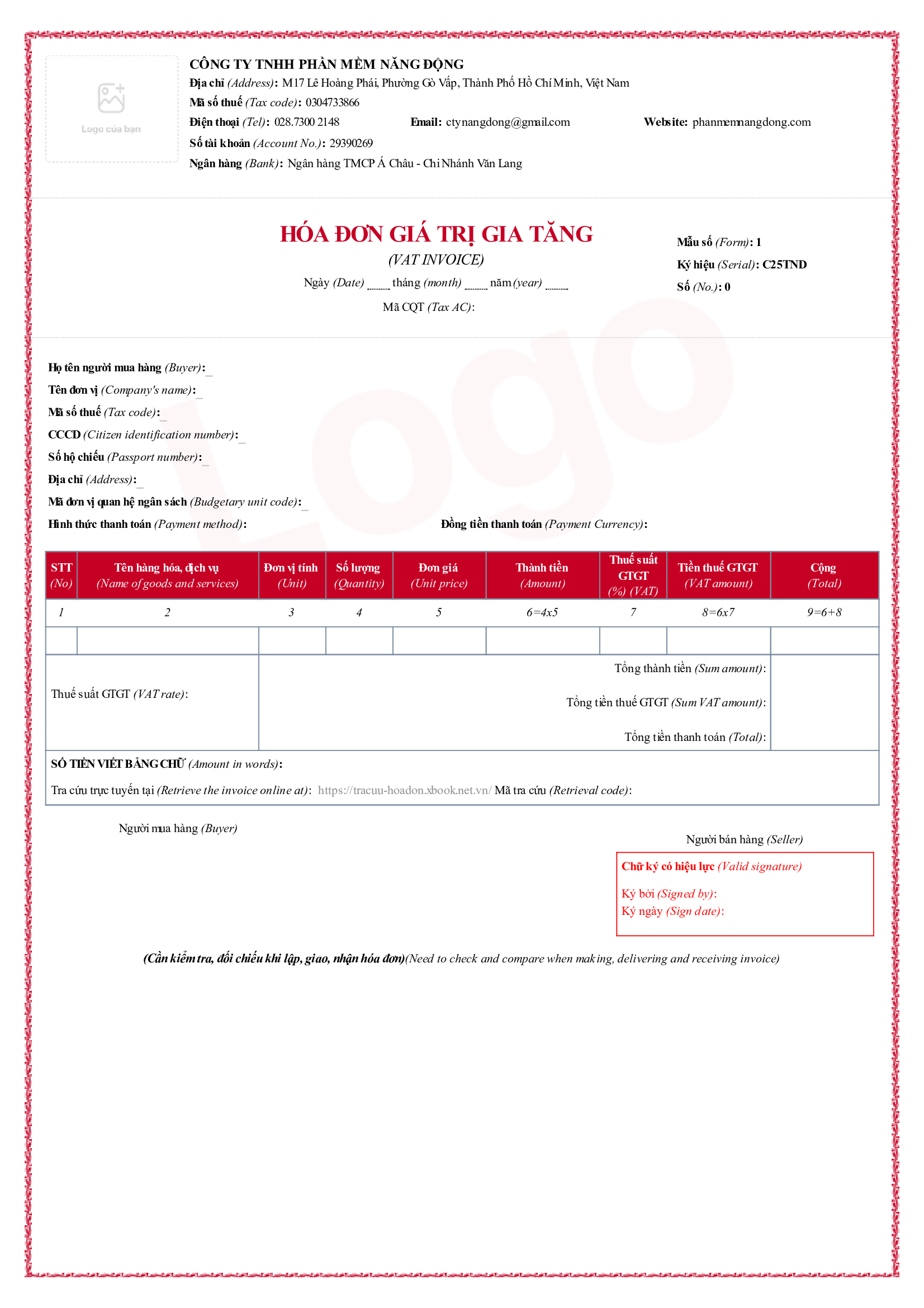 - Quyền sử dụng miễn phí 1 trong những mẫu hóa đơn có sẵn bên dưới, có thể đưa Logo công ty vô hóa đơn.